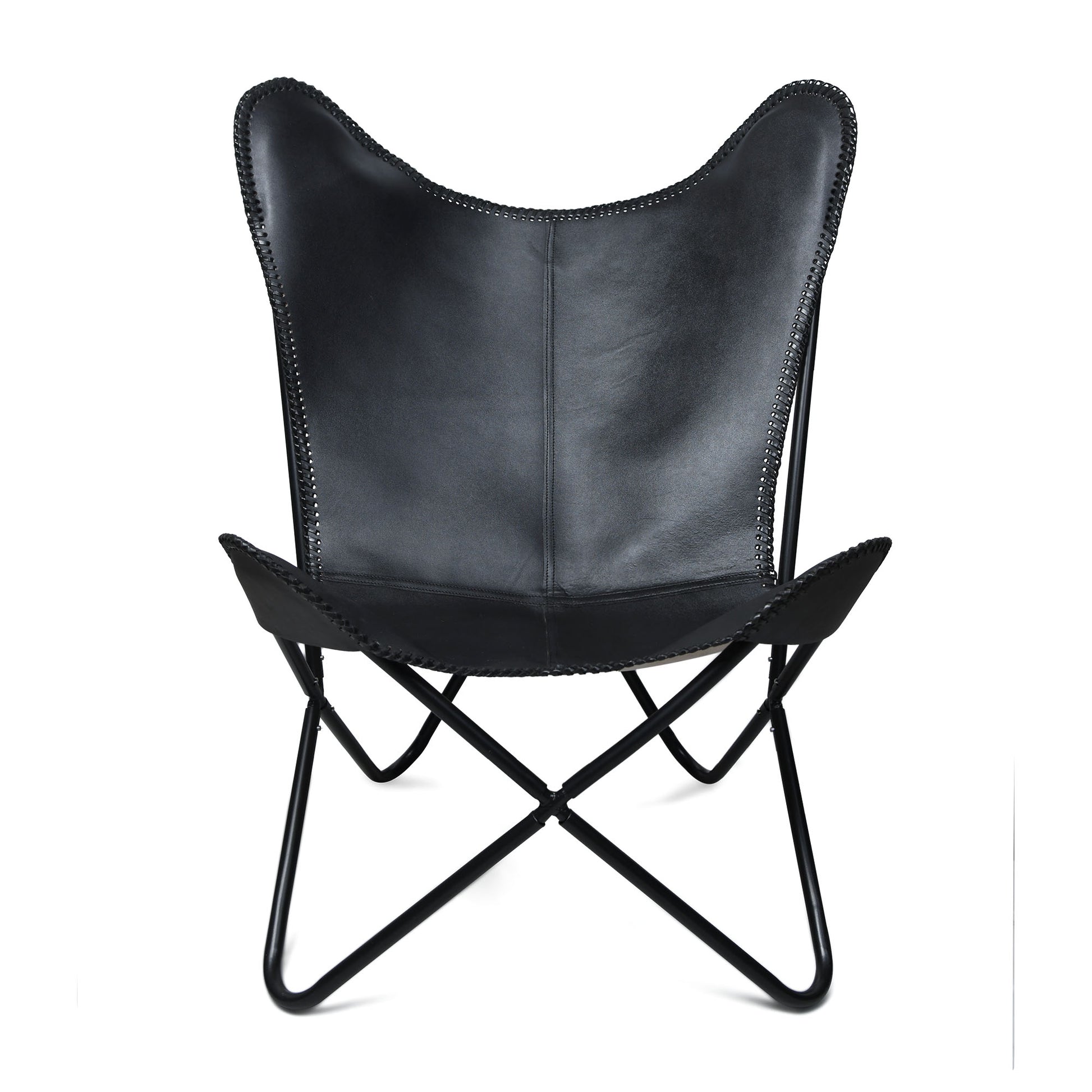 The leather is hand-cut and stitched carefully, and the corners are also wrapped with leather for extra strength. The black color gives it a luxury, classic, and modern look. The seat is made according to the body shape, ensuring maximum comfort. Curves are made of soft leather by our finest craftsmen. The chair frame is made from high-quality iron with copper plating of mild steel, giving it extra durability. It is also detachable and lightweight, so you can easily store it anywhere. This chair is inspired by the famous 1938 butterfly chair design, mixing classic style with a modern feel.